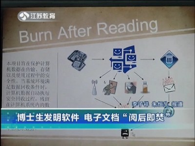 11月8日,《江苏教育频道》以《博士生发明软件 电子文档“阅后即焚”》为题报道了我院博士傅晓发明的一款文件删除软件。报道内容摘要如下。
