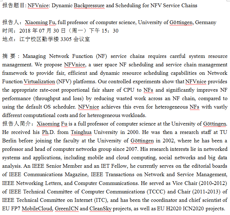 学术报告:NFVnice: Dynamic Backpressure and Scheduling for NFV Service Chains