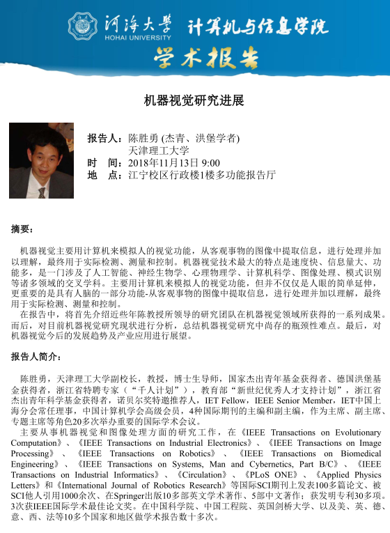 学术报告:机器视觉研究进展