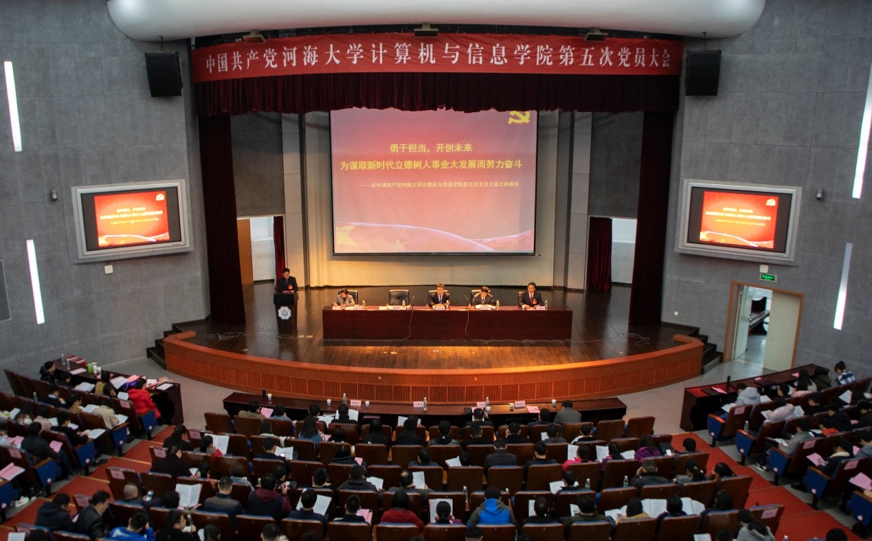 大会由学院党委副书记张炜同志主持。大会审议并通过了学院党费收缴和使用管理情况报告,党委换届选举办法和监票人、计票人名单,以无记名投票的方式差额选举出张雪刚、叶保留、张炜、李臣明、胡鹤轩、冯钧、高红民七位同志为学院第五届党委委员。在随后的计算机与信息学院第五届党委会第一次全体委员会上张雪刚当选为党委书记,张炜当选为党委副书记。