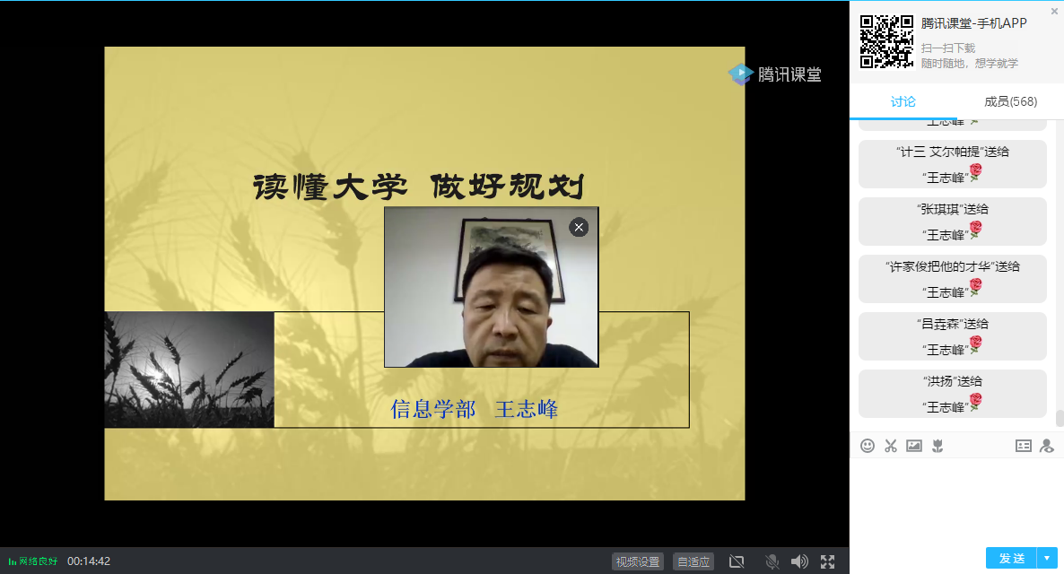 2020年6月18日晚,无码动漫 信息学部党委书记王志峰以“读懂大学,做好规划”为主题向计信院低年级同学开展了一场职业生涯规划讲座。王志峰书记从对当代大学的认识、大学教育的作用、本科后目标分析、职业生涯设计和大学生涯管理五个方面进行了阐述,学院全体辅导员及近600名学生在线聆听。