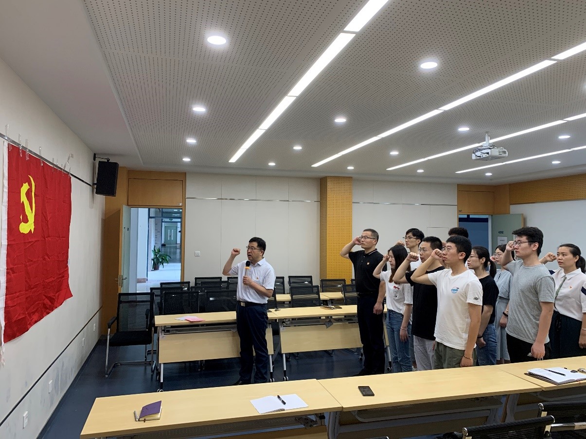 7月1日,信息学部党委开展预备党员“七一”入党宣誓活动,信息学部党委书记王志峰作为领誓人,带领信息学部全体新党员宣读入党誓词。