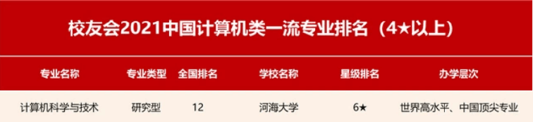 根据全国第三方大学评价机构艾瑞深校友会网(Cuaa.Net)独家撰写、科学出版社正式出版发行的《2021校友会中国大学排名高考志愿填报指南》里最新发布的2021中国计算机类一流专业排名,信息学部计算机科学与技术专业荣膺2021年中国六星级专业(6)美誉,全国并列第12,跻身世界高水平、中国顶尖研究型专业行列,在江苏省位列第一。同时2021年武书连排行榜,649家单位参评,计算机科学与技术专业位列全国第24,处在头部前3.88%