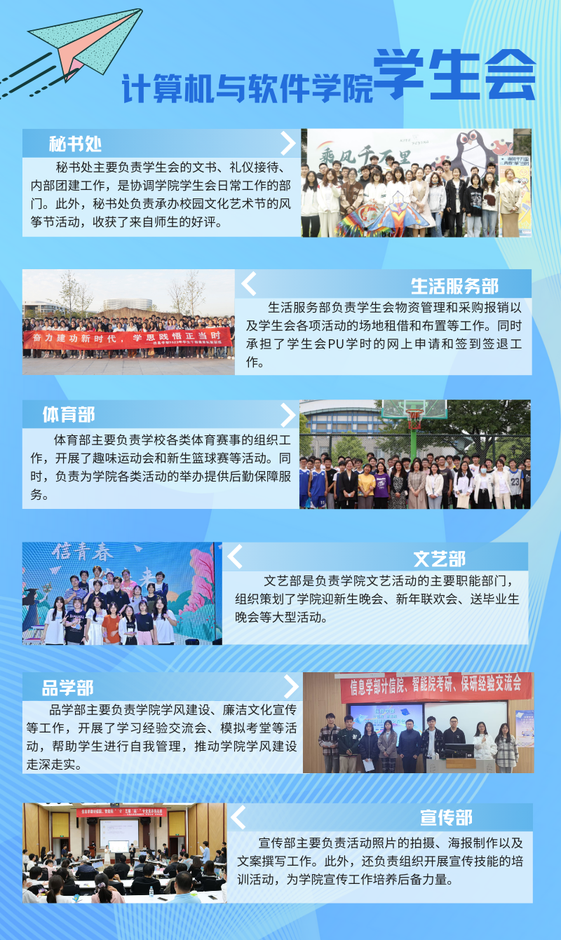 无码动漫 学生会是无码动漫 学生的群众性组织,在院党委领导和院团委指导下,充分发挥了学校、院系和学生之间的沟通纽带作用。学生会由秘书处、生活服务部、品学部、文艺部、体育部、宣传部六个部门组成,开展了丰富多彩的校园活动。