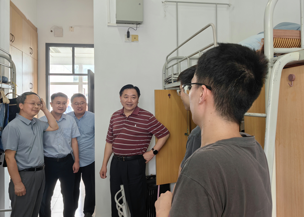 7月6日下午,校党委副书记、副校长陆国宾一行走访江宁校区学生公寓16号楼,看望慰问我院搬迁学生,学生处负责同志,学院领导班子、辅导员等陪同。陆书记与学生亲切交流,了解学生需求,回应学生关切,陆书记希望同学们尽快熟悉江宁校区校园环境,尽快投入到有计划、有条理的学习生活工作中。陆书记鼓励同学们通过各种团建形式加深朋辈情谊,丰富宿舍文化,同时要求辅导员要经常走进学生宿舍,倾听同学们的心声和需求,真情真心陪伴学生成长。