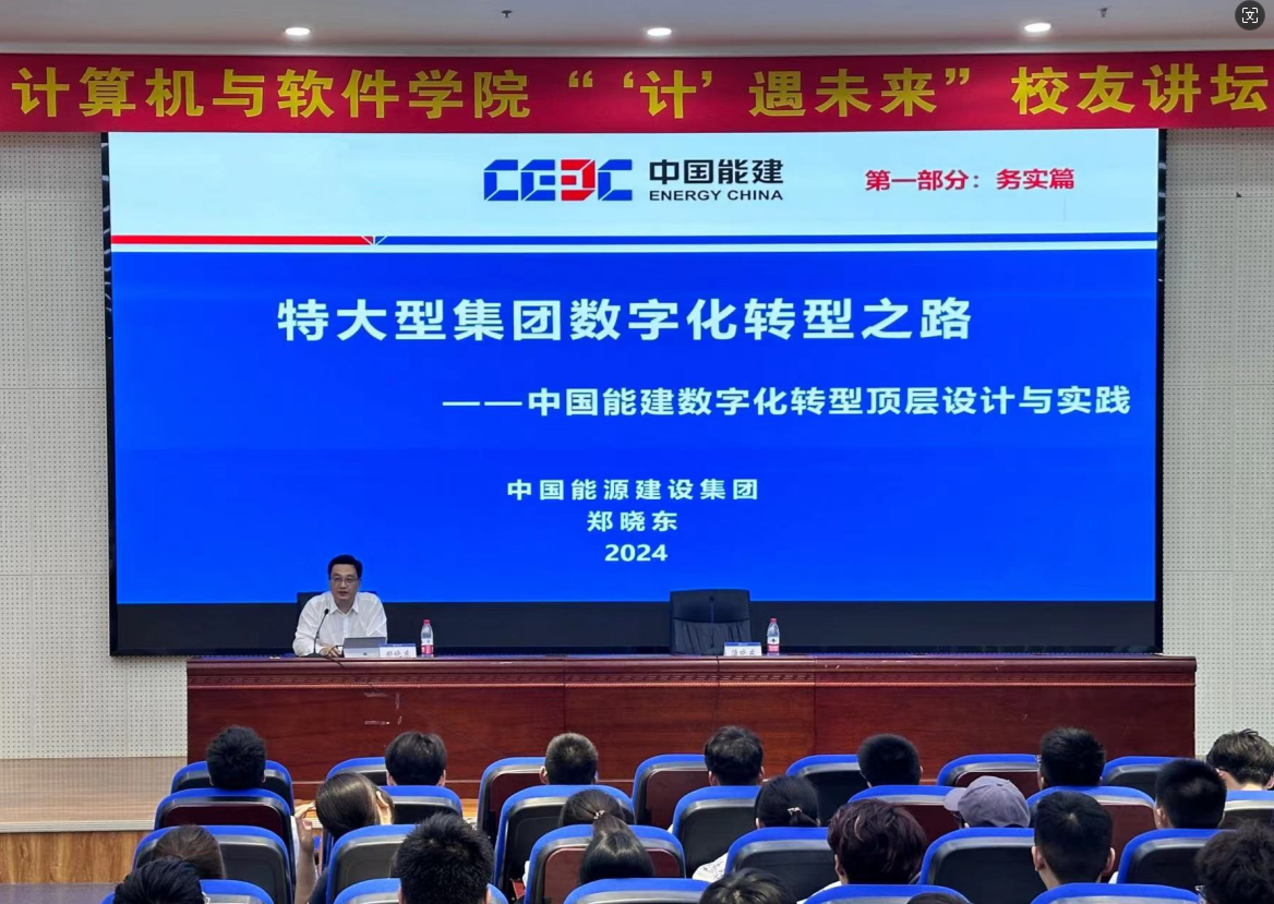 蒲晓东书记对郑晓东主任一行的到来表示热烈欢迎,并对中国能源建设集团长期以来对学校、学院事业发展的大力支持表示诚挚感谢。蒲晓东书记围绕学院历史沿革、学科概况、专业建设、师资队伍、科学研究、人才培养模式等方面做了详细介绍,他希望以此次来访为契机, 进一步深化双方在科技成果转化、创新人才培养等方面的合作,加强交流,发挥各自优势,加快推动各项合作事宜落地见效。郑晓东主任对学校、学院取得的一系列成绩表示祝贺,并简要介绍了中国能源建设集团目前主要业务、重大科研项目、人才招聘政策等方面情况,他表示,将与学院开展更高水平、更广范围、更深层次的合作,充分发挥双方在科研、技术、人才、资源、平台等方面的优势,实现互惠共赢。双方还围绕围绕大数据、大算力、大模型应用等方面进行了深入交流。