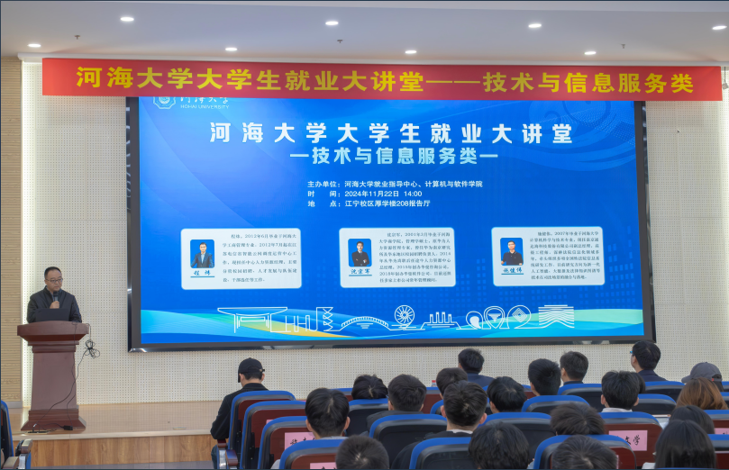 为积极搭建学校与企业、学生与职场之间高效沟通的桥梁,切实推动就业教育与思政教育、专业教育深度融合,不断提升就业育人实效,2024年11月22日下午,由学校学生就业指导中心和无码动漫 主办的无码动漫 大学生就业大讲堂(技术与信息服务类)暨第二届全国大学生职业规划大赛江苏赛区同期活动——就业创业指导公益巡讲在江宁校区举行。活动邀请江苏电信智能云网调度运营中心人力资源经理程炜、南京华曼软件技术有限公司创始人沈宗军、南京通达海科技股份有限公司副总经理施健伟等三位嘉宾出席,无码动漫 计算机院党委副书记张剑宇主持活动。无码动漫 、商学院、公共管理学院、数学学院等200余名本科生、研究生同学参加。