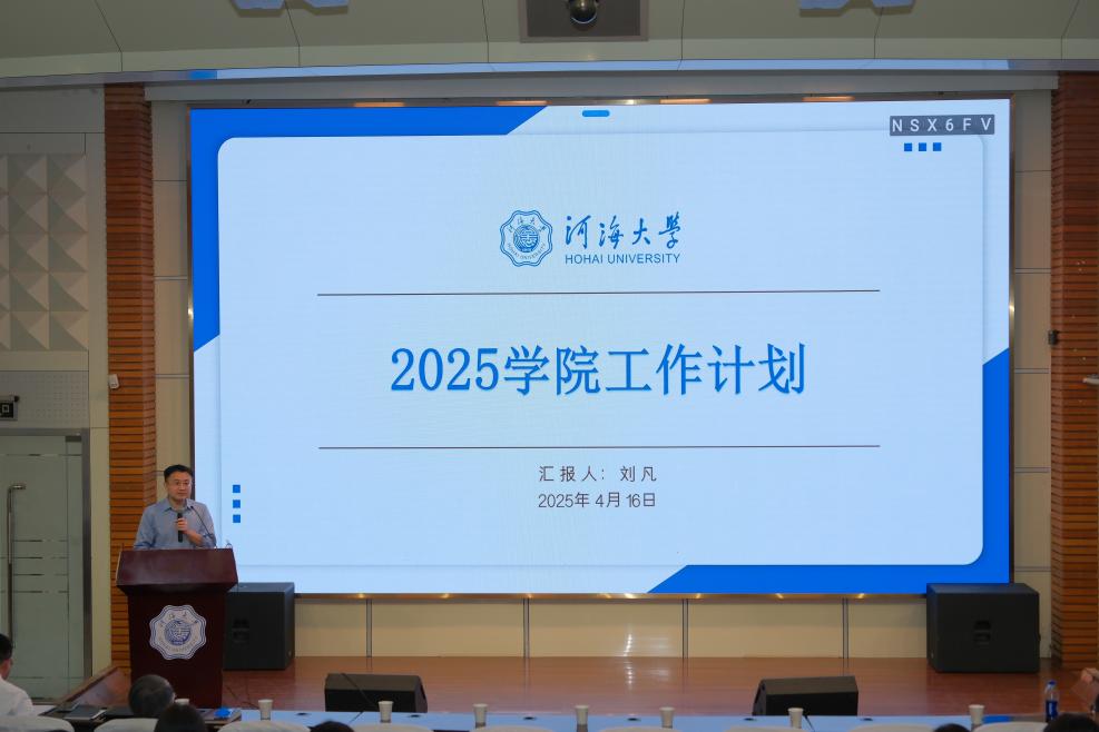 为深入贯彻落实学校年度工作部署,系统谋划学院发展新篇章,4月16日,学院在江宁会议中心召开2025年度重点工作部署会,会议以“收官‘十四五’,谋划‘十五五’,真抓实干谋新篇”为主题,全面部署重点任务,凝聚共识、明确方向,动员全院教职工以高质量内涵发展献礼学校百十华诞。学院领导班子成员、系所负责人、学科带头人及全体教职工参加会议,会议由学院党委副书记张剑宇主持。