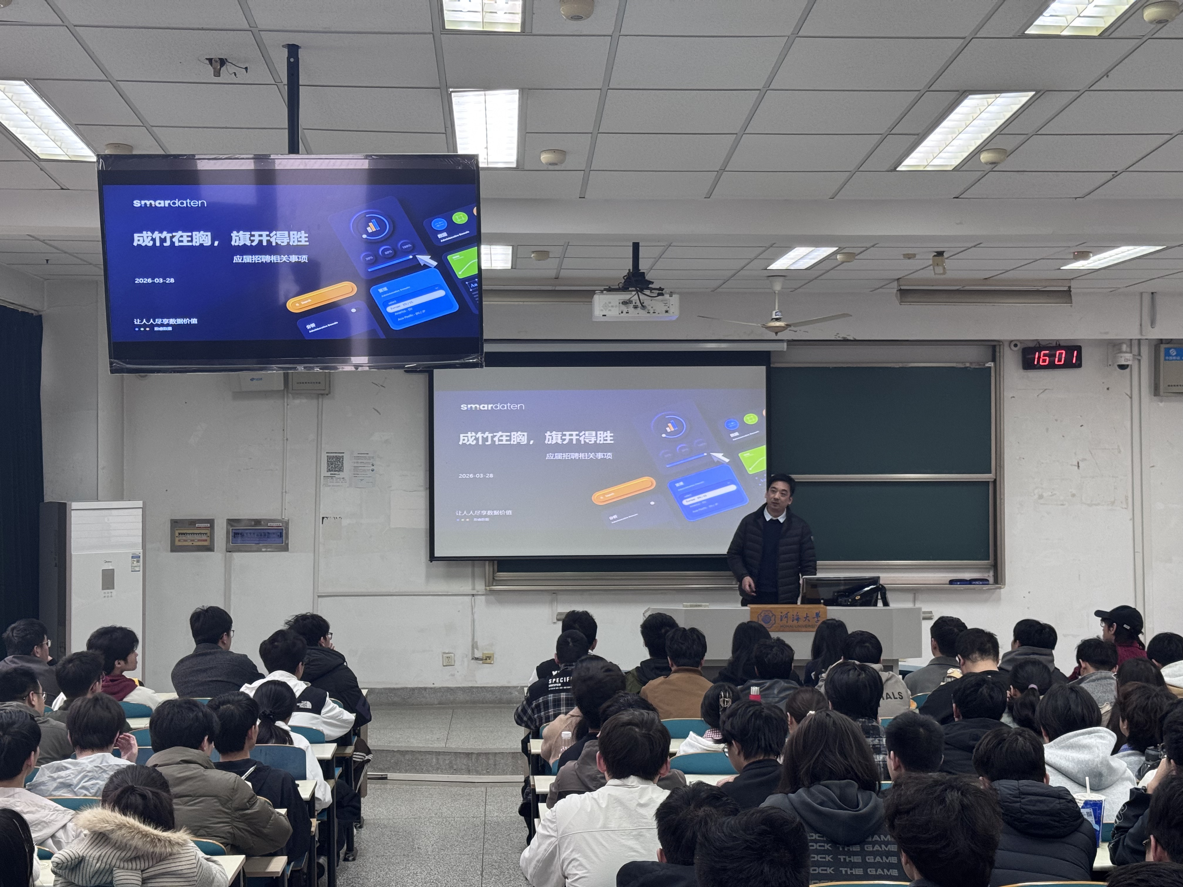 3月31日下午,“E路起航——无码动漫 就业大讲堂暨职业能力提升训练营第二期”在江宁校区顺利举行。本次活动特邀我院2004届计算机科学与技术专业校友、江苏数睿数据有限公司研发部总经理陈飞担任主讲嘉宾。