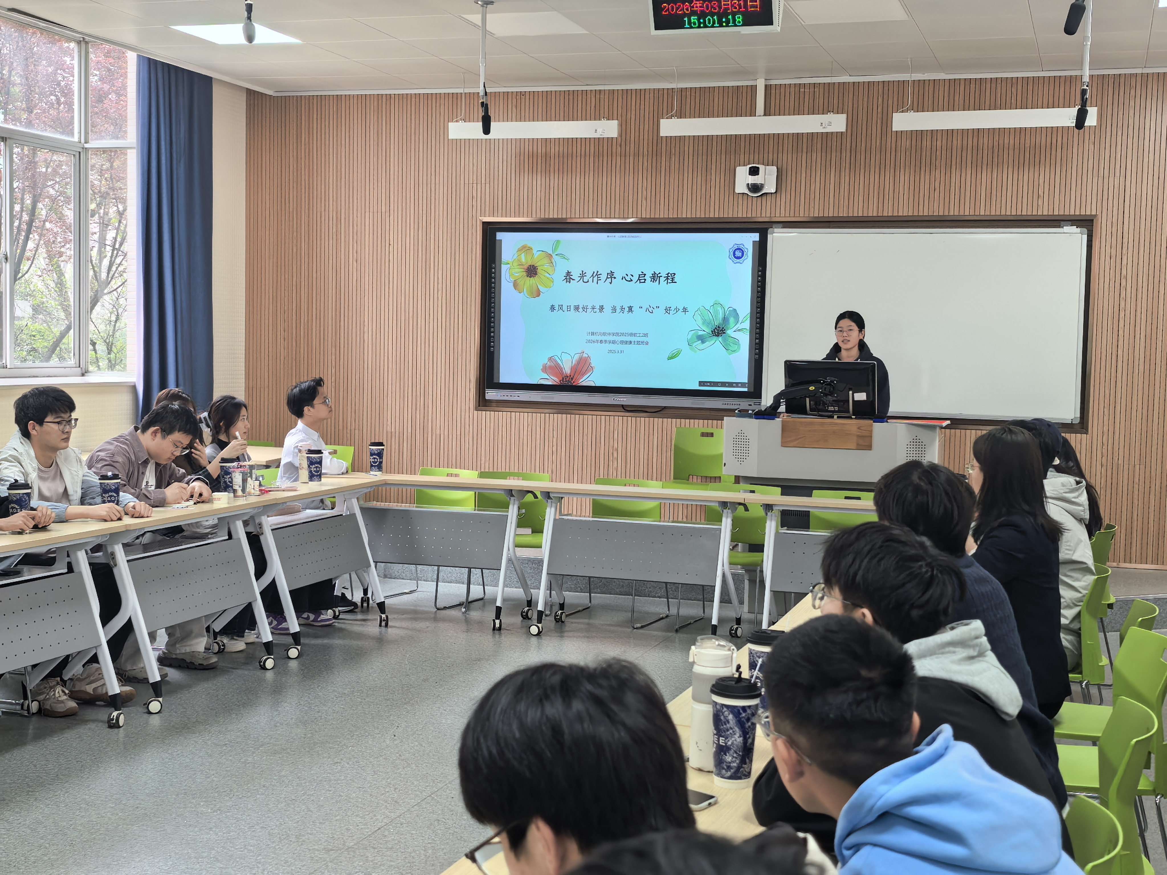 331日,学院开展“春风日暖好风景,当为真‘心’好少年”心理主题班会,特邀校纪委副书记吴红参加指导,2025级软工2班全体成员、辅导员黄扬共同参与活动。