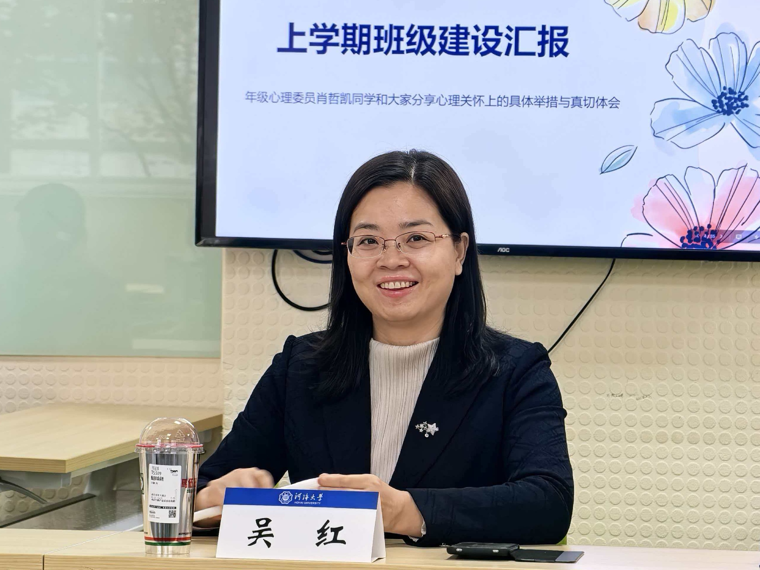 年级心理委员肖哲凯汇报了班级大一上学期班风学风建设情况,以心理委员日常走访宿舍为抓手,介绍了未来工作要从建台账、办活动、织网络三个方面主动发力,探索班级心理健康教育可复制、可推广的方法。