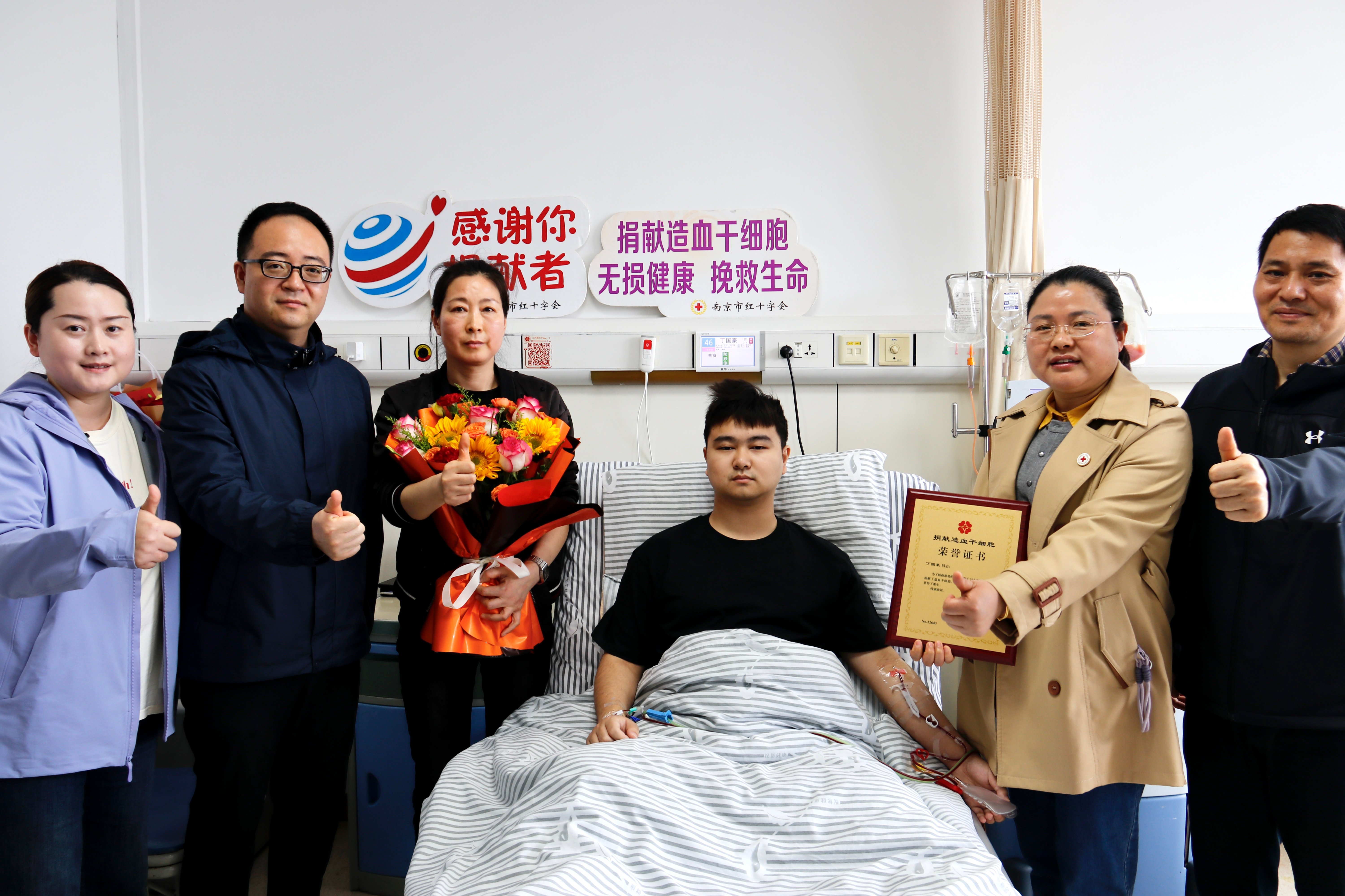 造血干细胞捐献,捐献者和受捐者需要遵守互不联系的“双盲原则”。在丁国豪完成捐献后,他除了收到南京市红十字会颁发的荣誉证书,还收到了一封受捐者的亲笔信,信中写道:“您捐献的不仅是干细胞,更是我活下去的勇气,给了我重返家庭,守护亲人的机会。”“我不知道自己帮助的是谁,但如果能延续他的生命,让他能继续体验生活、感受世界的美好,那一切都是有意义的。”丁国豪说。