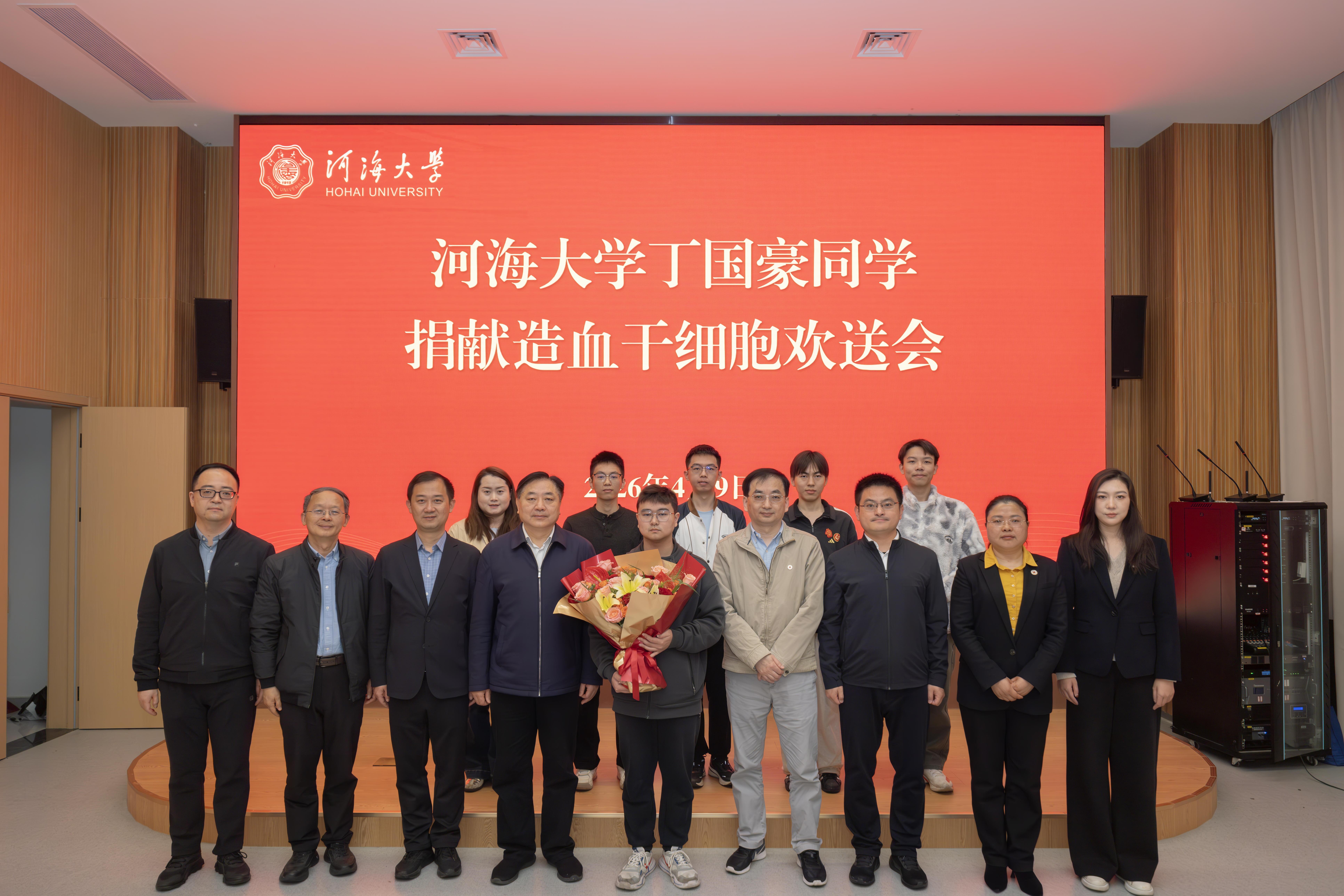 在得知他捐献的消息后,学校第一时间协调课程安排和对接保障,并为丁国豪举行了一场温馨的造血干细胞捐献欢送会,用实实在在的行动支持这份爱心。校党委副书记、副校长陆国宾向他赠送书籍和慰问金,称赞他以实际行动展现了河海学子积极向善、无私奉献的精神风貌。